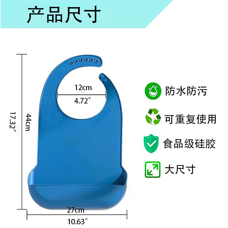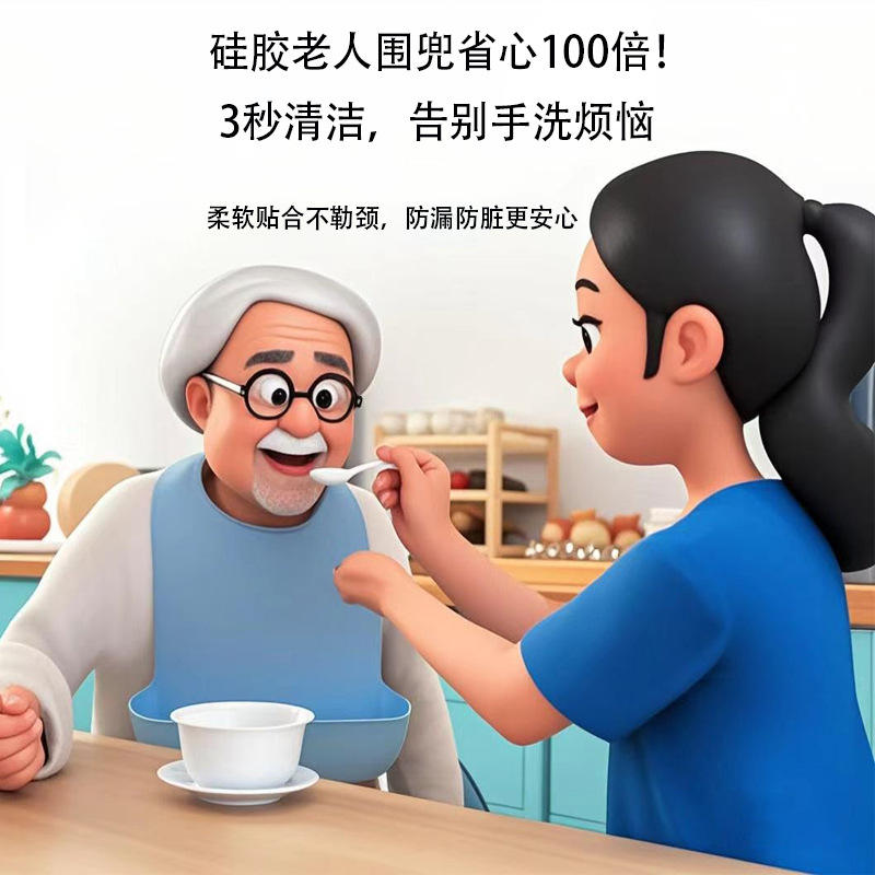 ผ้ากันเปื้อนซิลิโคนสำหรับผู้ใหญ่ เกรดอาหาร ป้องกันการรั่วซึม แบบ 3 มิติ กันน้ำ สำหรับผู้สูงอายุ