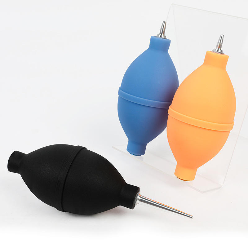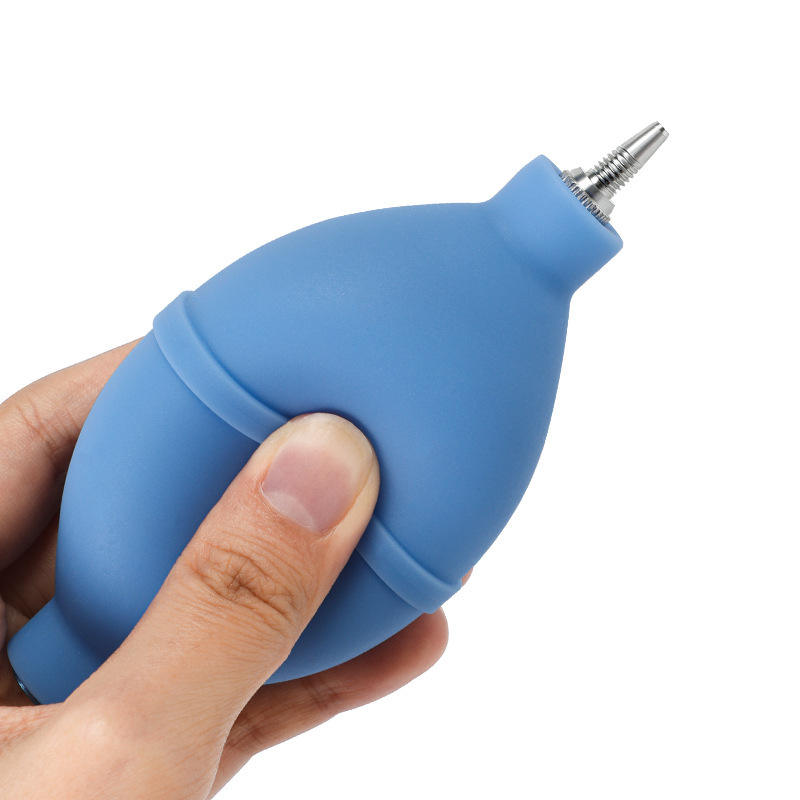 เครื่องเป่าลมซิลิโคนสำหรับทำความสะอาดฝุ่นสำหรับคีย์บอร์ดกล้อง หัวฉีดขนาดใหญ่พร้อมปลายโลหะ มีตัวเลือกหลายสี