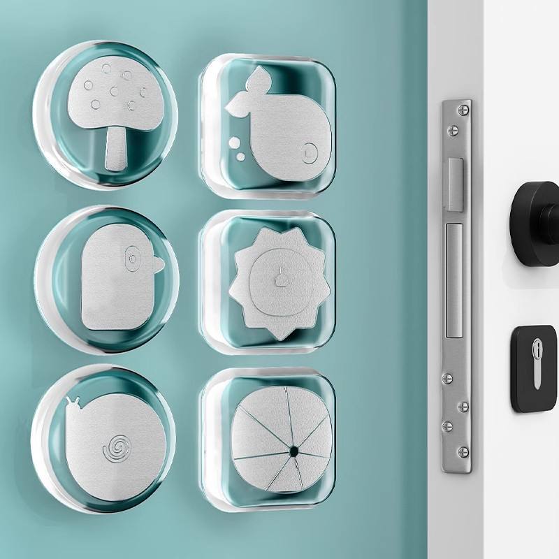 ซิลิโคนสติ๊กเกอร์ป้องกันการชนกันสำหรับมือจับประตูตู้เย็นตู้เฟอร์นิเจอร์แผ่นสักหลาดกาวในตัวโปร่งใสติดผนัง