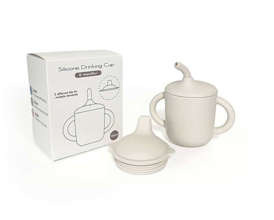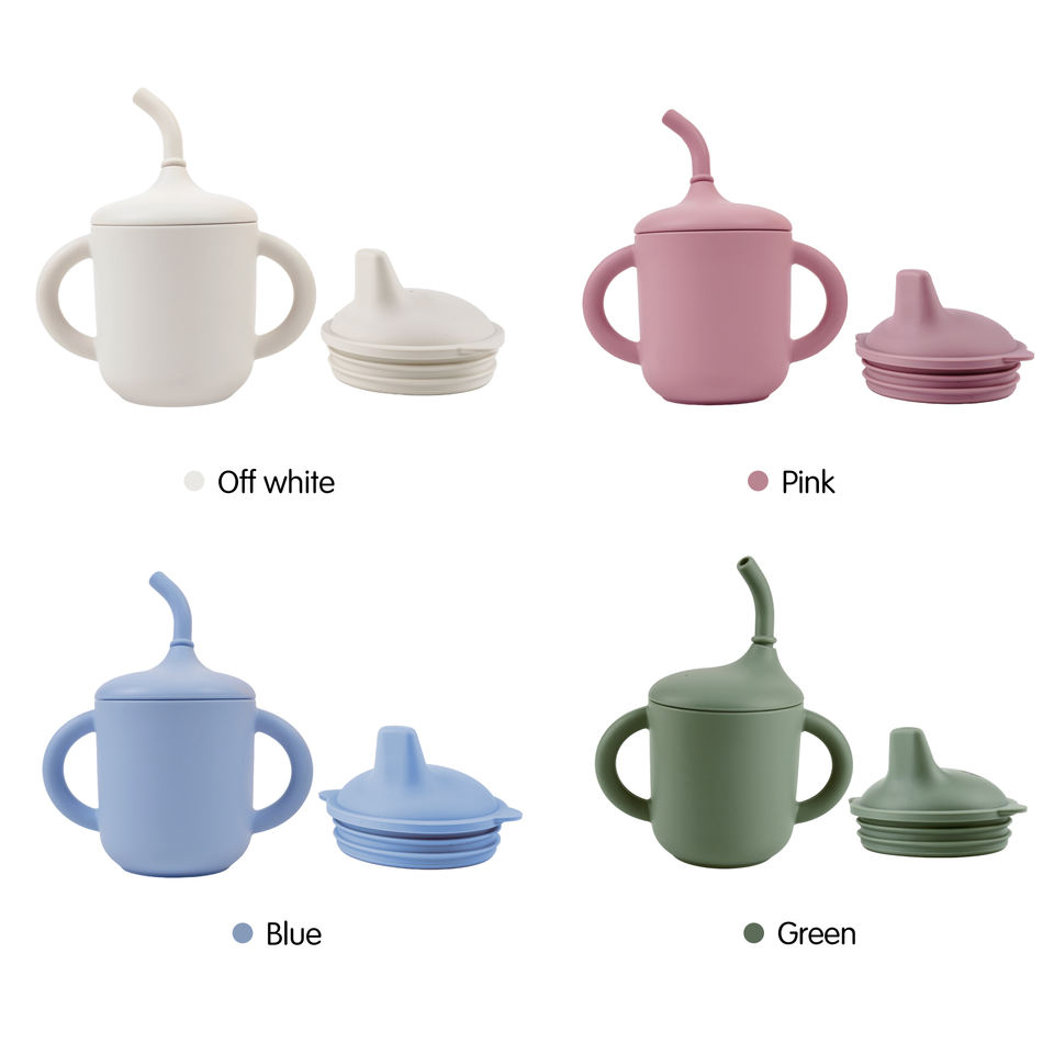ถ้วยซิลิโคนสำหรับฝึกเด็กทารกแบบ2-in-1ฝาจับนุ่มสำหรับเด็กวัยหัดเดินสามารถซักได้ในน้ำได้สีที่กำหนดเอง (อายุ7-24เดือน)