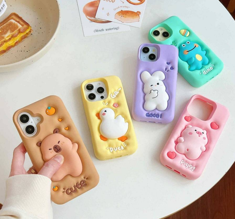 เคสซิลิโคนลายการ์ตูน 3 มิติ รูปเป็ดบีบได้ ป้องกันรอยขีดข่วน สำหรับ iPhone 12 13 14 15 Pro Max