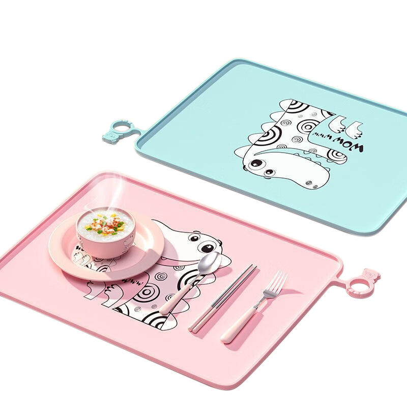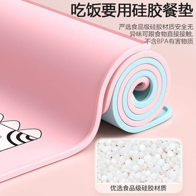 แผ่นรองจานซิลิโคนสำหรับเด็กทรงสี่เหลี่ยมขนาดใหญ่ ปลอดสาร BPA พร้อมหูจับ ปลอดภัยสำหรับเด็กและนักเรียน