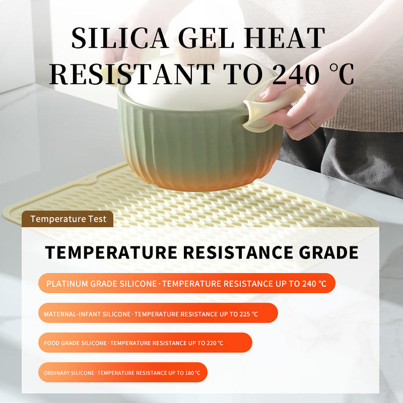 แผ่นรองซิลิโคนกันน้ำลายคลื่นสีเบจสำหรับอ่างล้างจาน ทำความสะอาดง่าย แผ่นรองสำหรับทำครัว