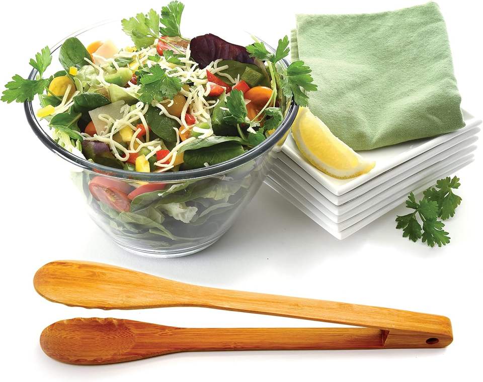ที่คีบอาหารซิลิโคนแบบเป็นมิตรกับสิ่งแวดล้อม พร้อมด้ามจับไม้ สำหรับสลัด ขนมปัง มะม่วง