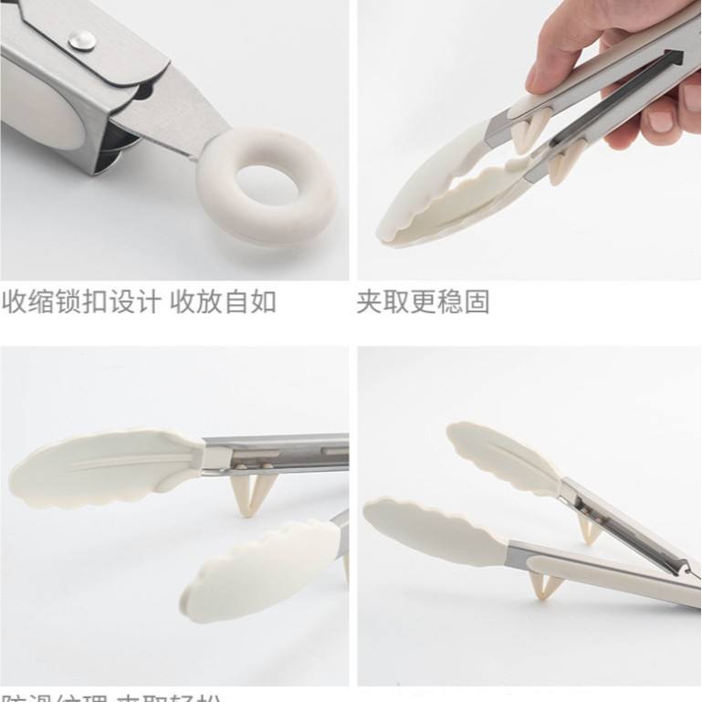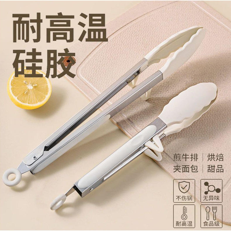 คลิปหนีบอาหารซิลิโคนสแตนเลสอเนกประสงค์เครื่องมือครัวบาร์บีคิวสีขาวสีแดงหลากสีสีเขียวอ่อน Ztc540 ชุด