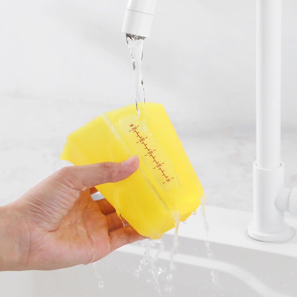 ถ้วยตวงซิลิโคน 250 มล. เครื่องมือทำครัวเกรดอาหาร สีเหลือง สีเทา สีขาว