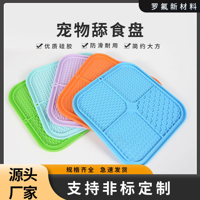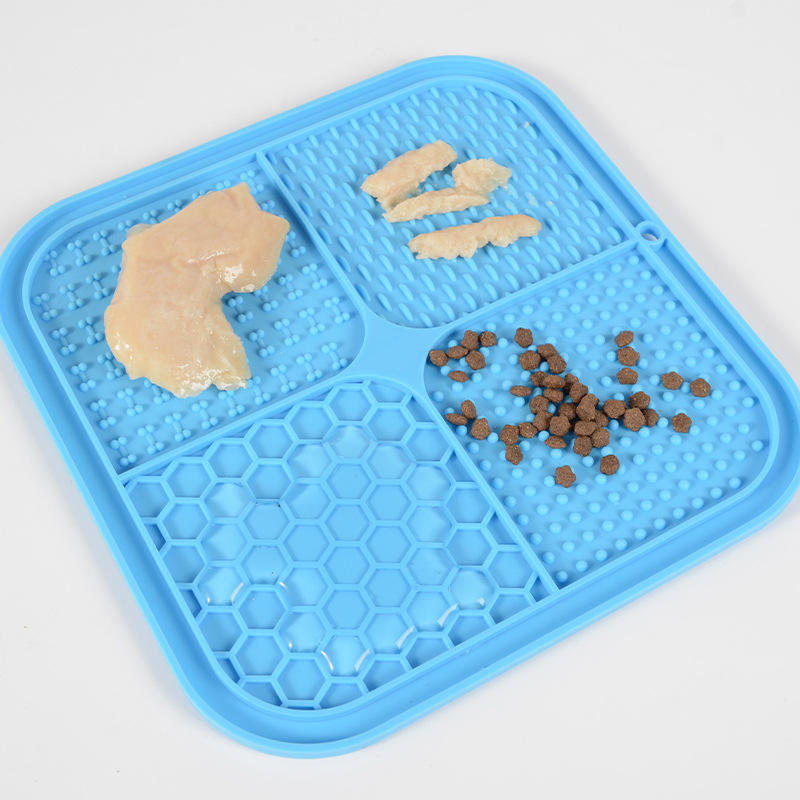 แผ่นรองเลียซิลิโคนสำหรับสัตว์เลี้ยง ชามอาหารแบบชะลอการกิน สำหรับสุนัขและแมว ลายเรขาคณิต รูปทรงสี่เหลี่ยม แผ่นรองอาหาร อุปกรณ์สำหรับสัตว์เลี้ยง