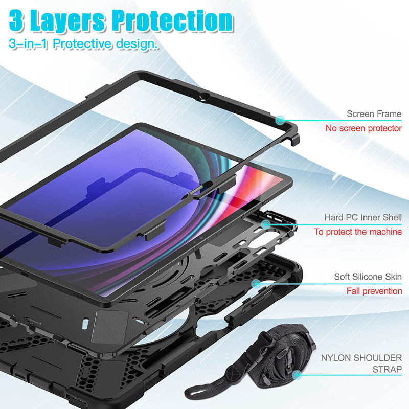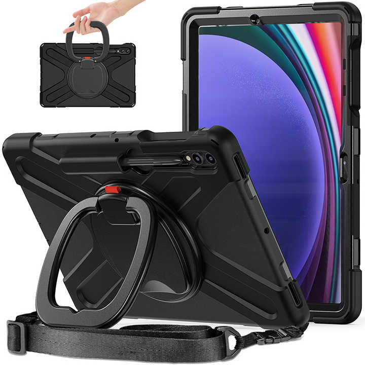 ซิลิโคนกันกระแทกกรณีแท็บเล็ตสําหรับSamsung Galaxy Tab S9 Plus S9 FE Plus S8 Plusหมุนพับจับขาตั้งสายคล้องไหล่