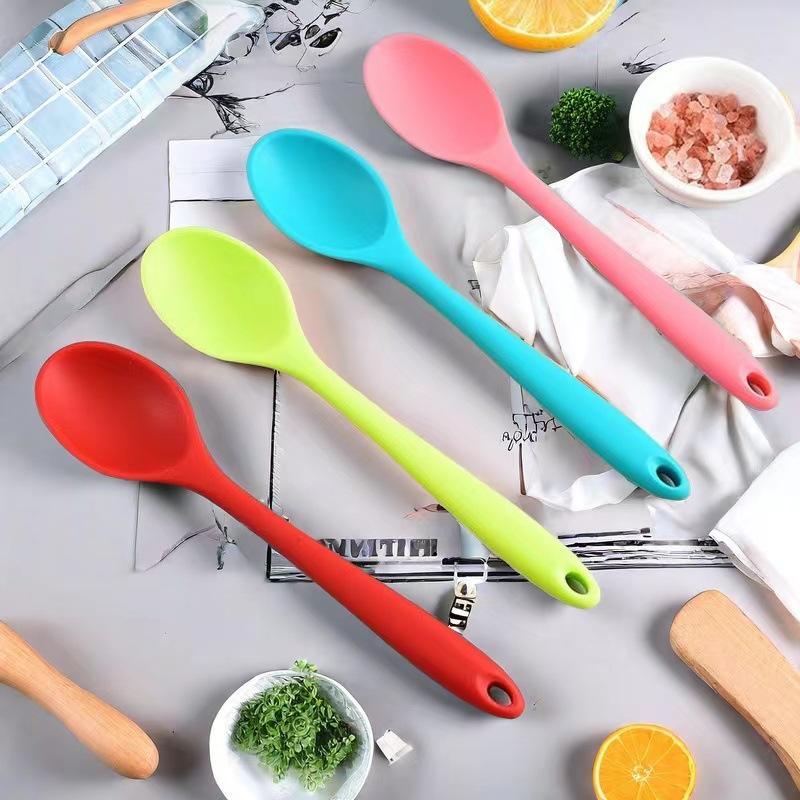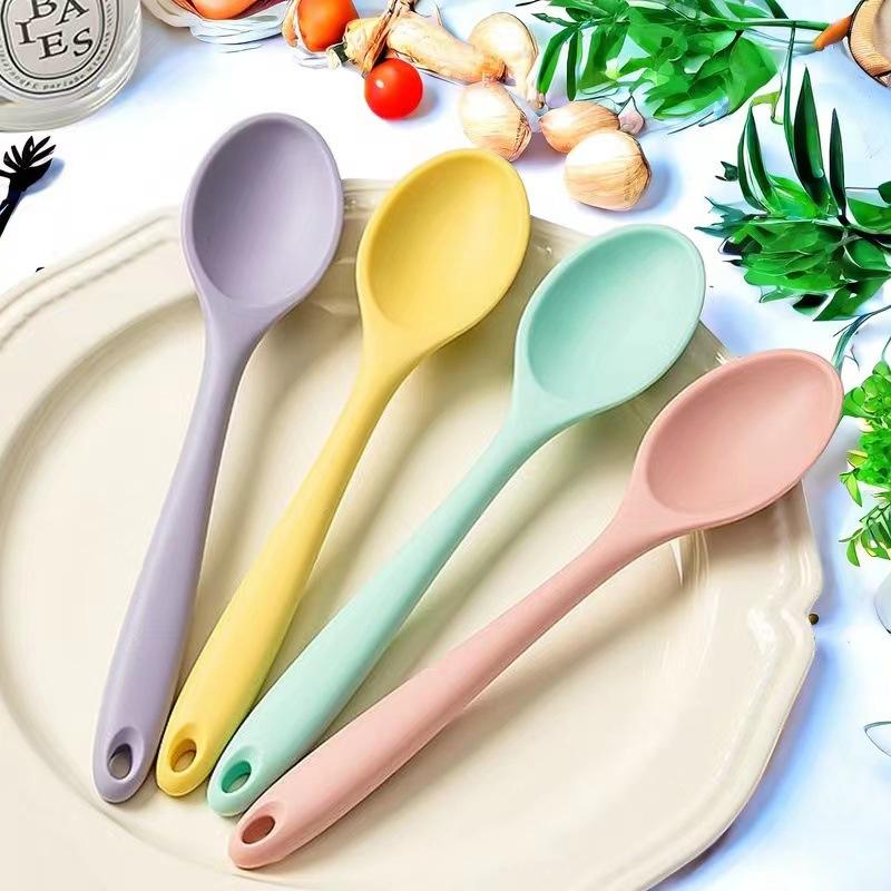ชุดช้อนซิลิโคน 4 ชิ้น สีพาสเทล อุปกรณ์ทำอาหารทนความร้อนสำหรับใช้ในครัว