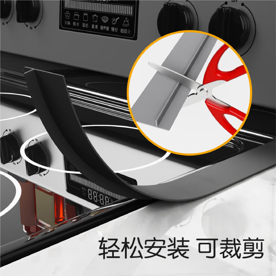 ฝาครอบช่องว่างเตาซิลิโคน แถบปิดผนึกเตาอบทนความร้อน ทำความสะอาดง่าย ตัดได้ สีดำ สีเทา สีขาว โปร่งใส