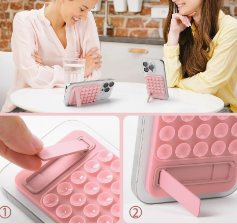 เคสโทรศัพท์มือถือแบบซิลิโคนพร้อมจุกดูดอเนกประสงค์ แผ่นรองหลังแบบซิลิโคนพับได้ ขาตั้งซิลิโคนแบบติดกระจก ติดตั้งง่าย ไม่ลื่น ใช้เป็นขาตั้งบนโต๊ะได้