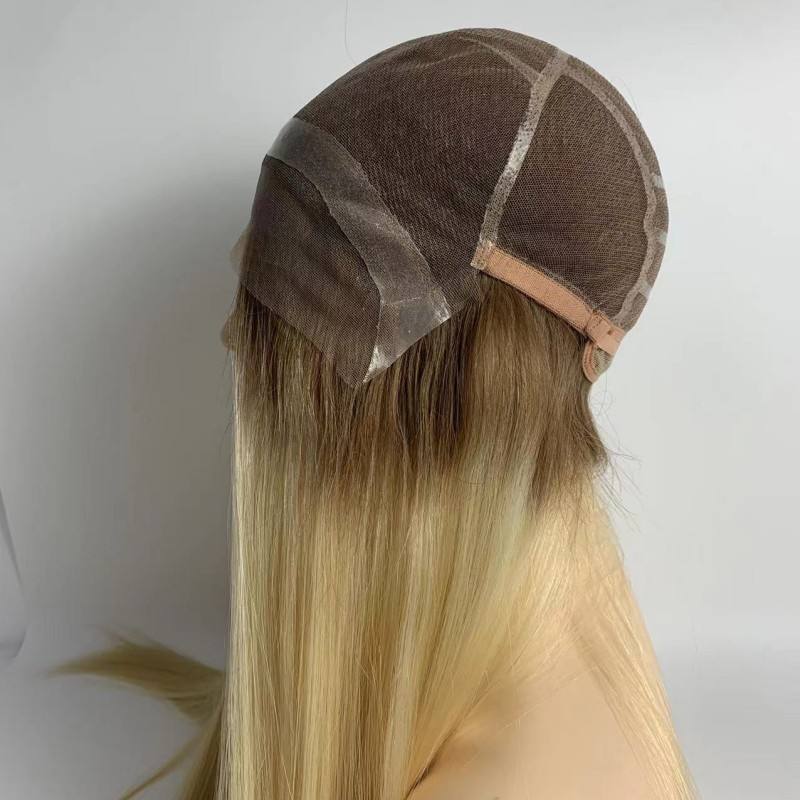 วิกผมซิลิโคนสำหรับผู้หญิงแก้ผมร่วงแบบเต็มวิกผมสีน้ำตาลรากสีบลอนด์วิกทางการแพทย์