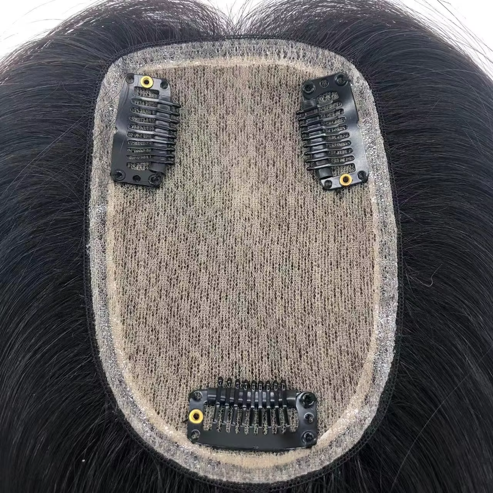 1B ฐานผ้าไหมที่มีคุณภาพสูงแฮร์พีซผูกด้วยมือพร้อมคลิปหนีบผมแท้