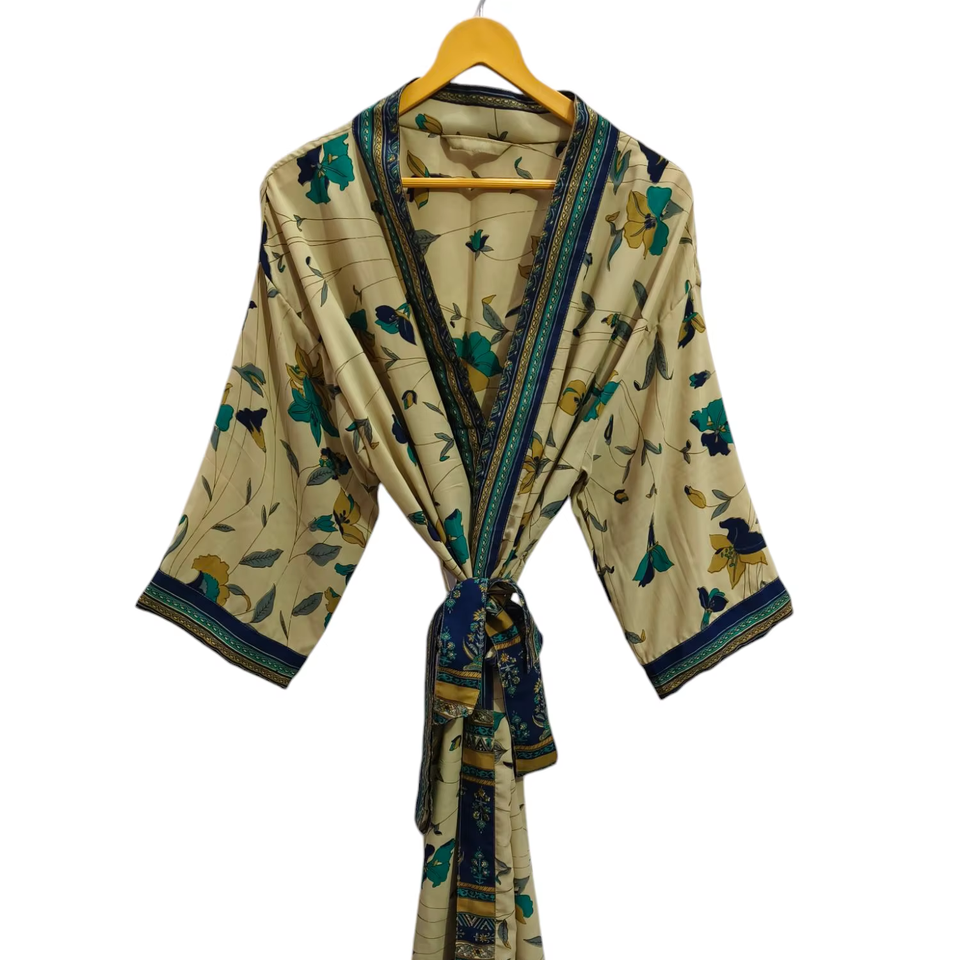 เสื้อคลุมอาบน้ำผ้าไหมชุดคลุมสำหรับใส่ในฤดูร้อนชุดบิกินี่เสื้อคลุมยาวชุดคลุมสำหรับกลางคืนทำด้วยมือสไตล์วินเทจผ้าไหมส่าหรี