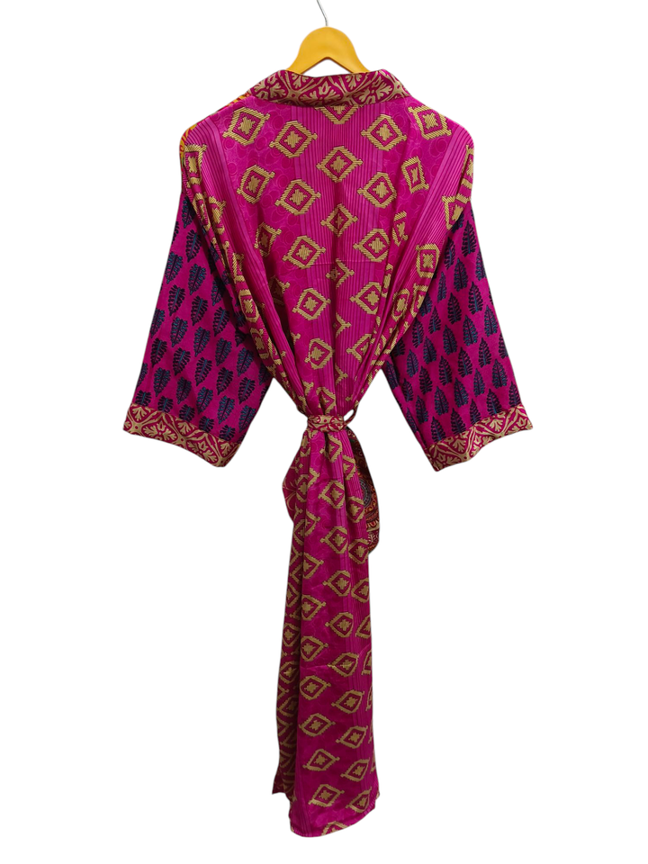 เสื้อคลุมอาบน้ำผ้าไหมชุดคลุมสำหรับใส่ในฤดูร้อนชุดบิกินี่เสื้อคลุมยาวชุดคลุมสำหรับกลางคืนทำด้วยมือสไตล์วินเทจผ้าไหมส่าหรี