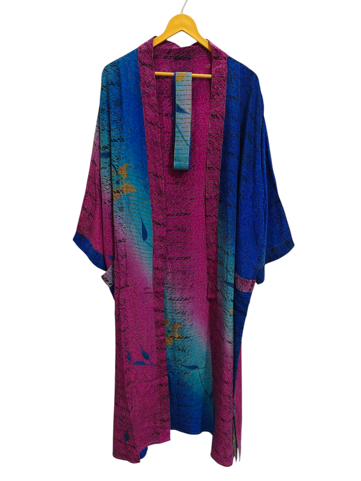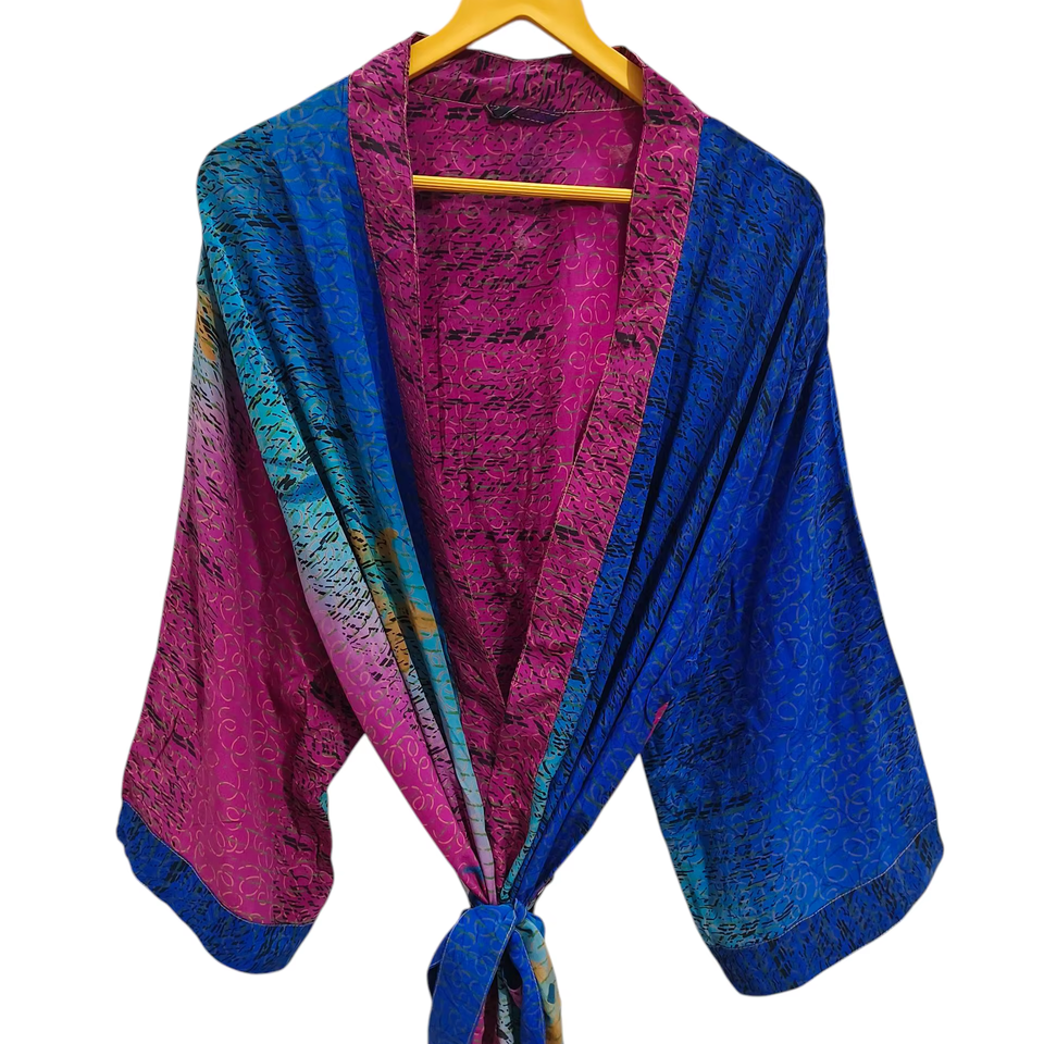 เสื้อคลุมอาบน้ำผ้าไหมชุดคลุมสำหรับใส่ในฤดูร้อนชุดบิกินี่เสื้อคลุมยาวชุดคลุมสำหรับกลางคืนทำด้วยมือสไตล์วินเทจผ้าไหมส่าหรี
