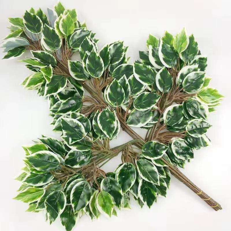 การจัดดอกไม้ผ้าไหมสำหรับช่อดอกไม้ในงานแต่งงานแบบทำมือใบใบฟอคัสเทียมต้นเบนจามินาเพิ่มความเขียวขจีสำหรับวันเกิด