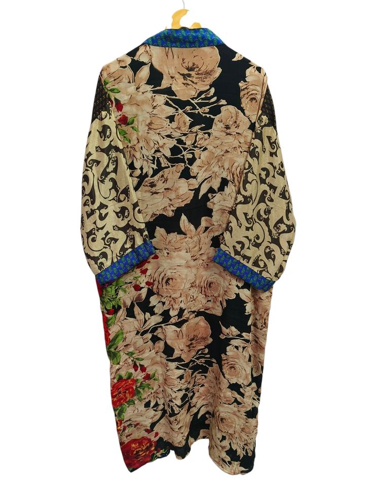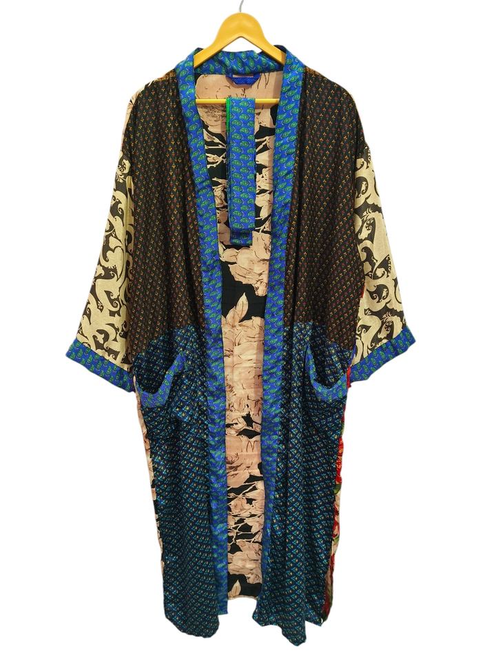 ชุดคลุมในสวนทำจากผ้าไหมลายส่าหรีสไตล์วินเทจชุดกิโมโนผ้าไหมขนาดฟรีไซส์ชุดใส่ในงานกลางคืนเสื้อคลุมหลากสีสวมใส่สบายใส่ในบ้าน