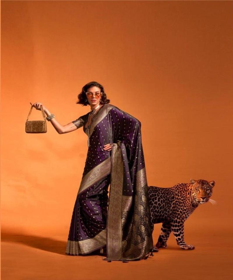 ผ้าส่าหรีผ้าไหมออกแบบตาข่ายสำหรับงานแต่งงานของผู้หญิง