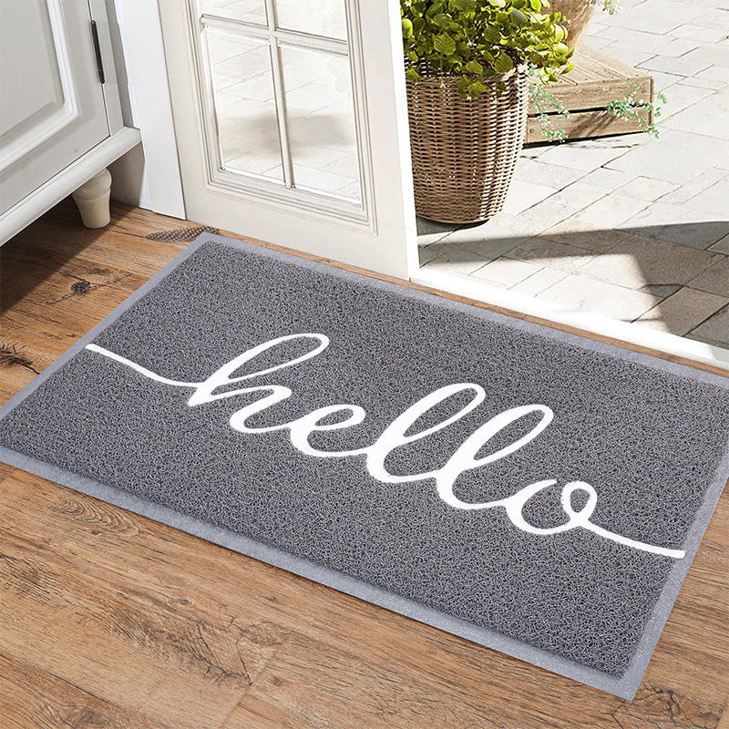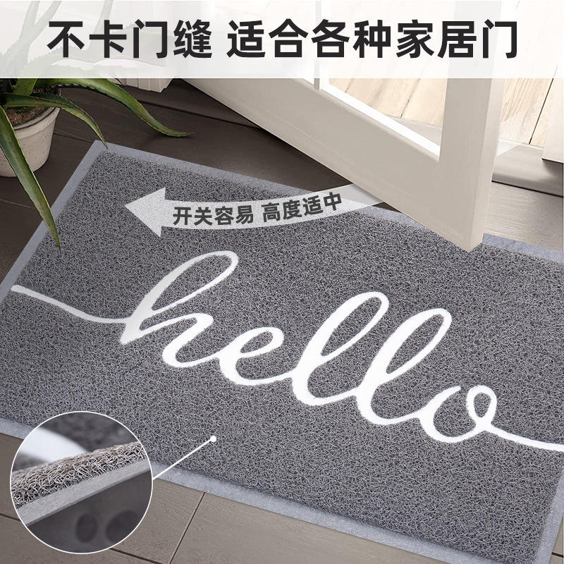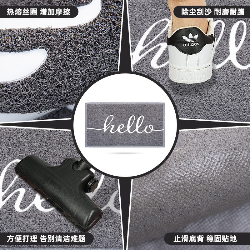 พรมเช็ดเท้าแบบวงกลม ผ้าไหมสีเทา รูปทรงสี่เหลี่ยมผืนผ้า พีวีซี สำหรับใช้ภายในบ้าน กันลื่น ทำความสะอาดง่าย พรมปูพื้นทางเข้าบ้าน ลายทันสมัย ชิ้นเดียว