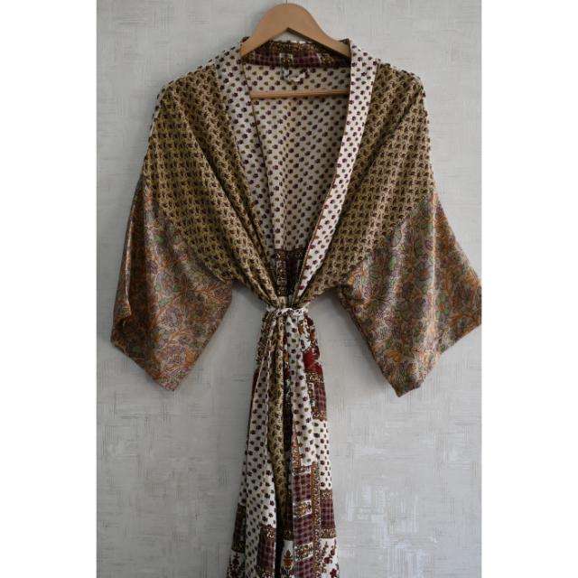 ชุดกิโมโนผ้าไหมปะติดปะต่อสำหรับผู้หญิง ชุดนอนยาวหรูหราสไตล์โบโฮ ดีไซน์เนอร์