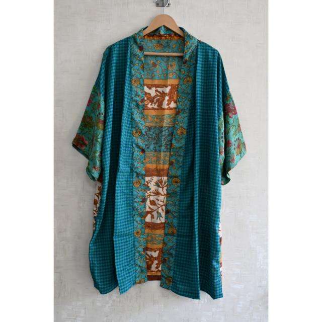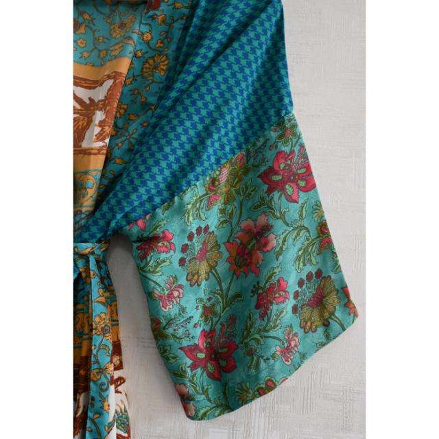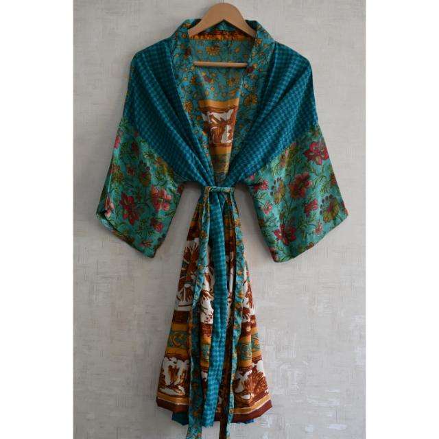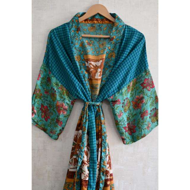 ชุดกิโมโนผ้าไหมปะติดปะต่อสำหรับผู้หญิง ชุดนอนยาวสไตล์โบโฮเซ็กซี่ ชุดนอนนุ่มเบาสบาย