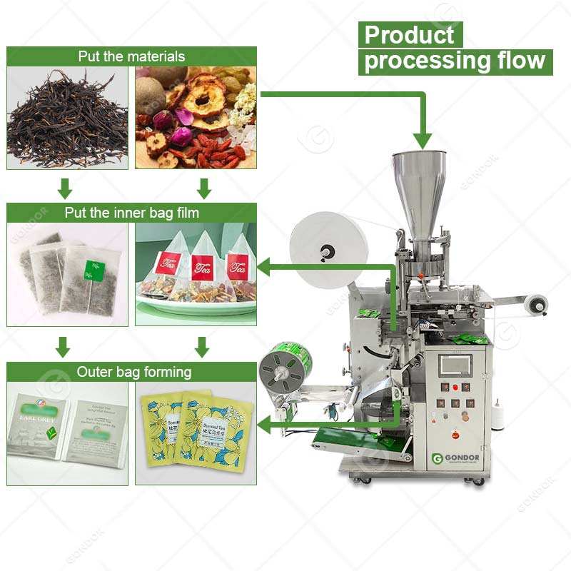 เครื่องบรรจุถุงชาแบบซองกระดาษกรองสมุนไพรทรงกลมแบบไหม สำหรับธุรกิจขนาดเล็ก พร้อมถุงแบบมีเชือก