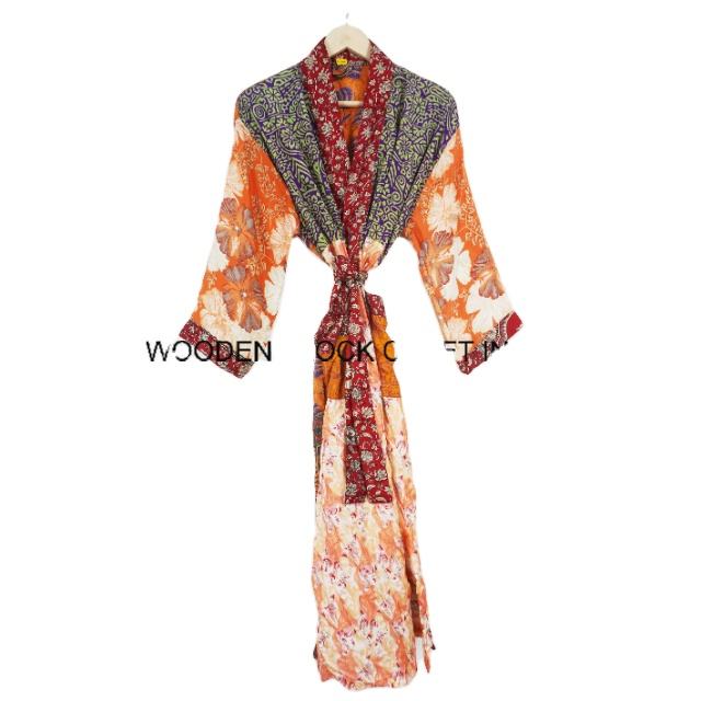 ชุดกิโมโนผ้าไหมส่าหรีชุดนอนเจ้าสาวสไตล์วินเทจระบายอากาศได้หรูหรา