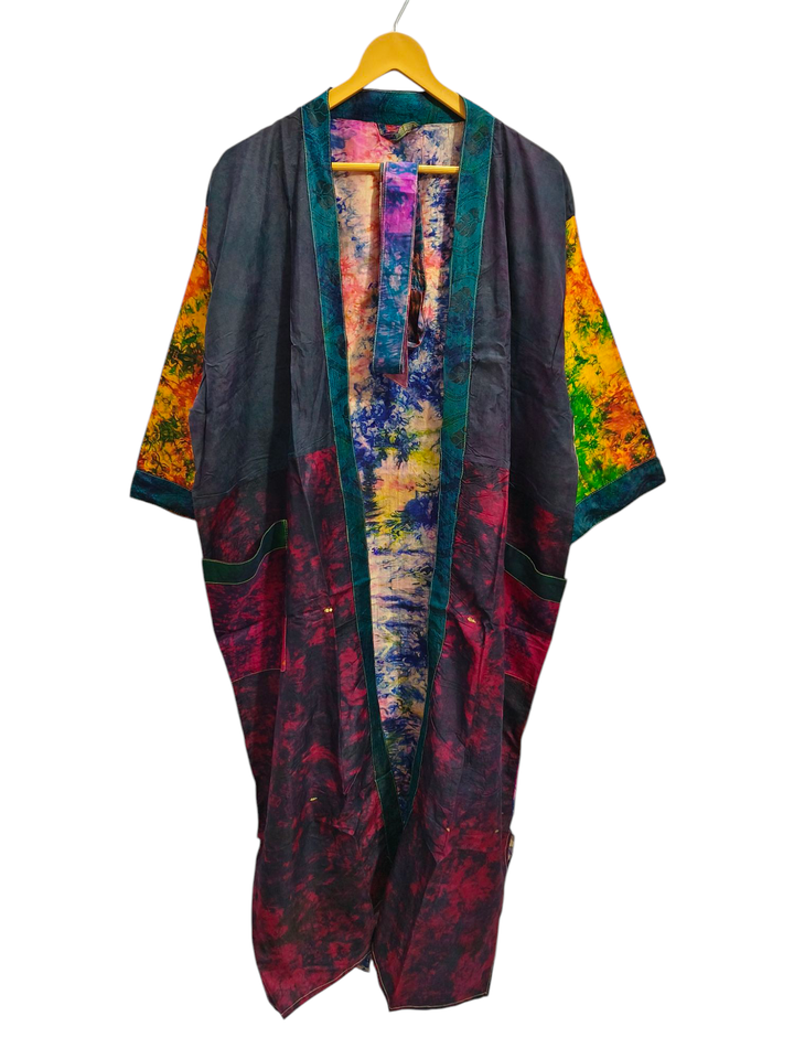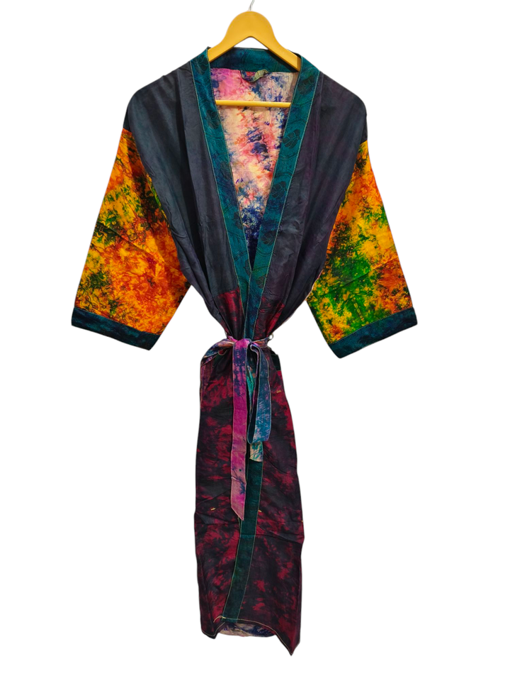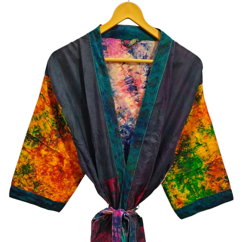 ชุดคลุมผ้าไหมมัดย้อมสำหรับเจ้าสาวชุดคลุมสำหรับเป็นของขวัญสำหรับงานปาร์ตี้ชายหาดชุดกิโมโนผ้าไหมส่าหรีสไตล์อินเดีย
