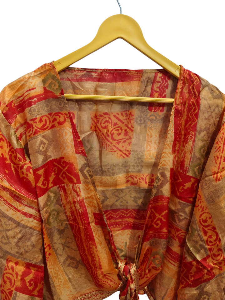 เสื้อเบลาส์ผ้าไหมหลากสีสำหรับผู้หญิงเสื้อเบลาส์ผ้าไหมหลากสีเสื้อเชิ๊ตทรงสั้นฟรีไซส์