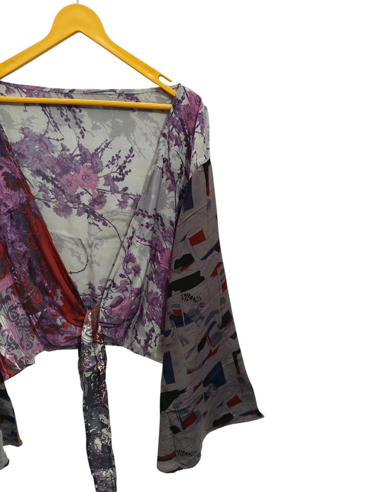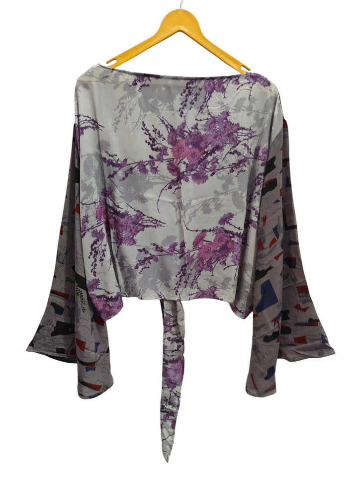 เสื้อเบลาส์ผ้าไหมหลากสีสำหรับผู้หญิงเสื้อเบลาส์ผ้าไหมหลากสีเสื้อเชิ๊ตทรงสั้นฟรีไซส์