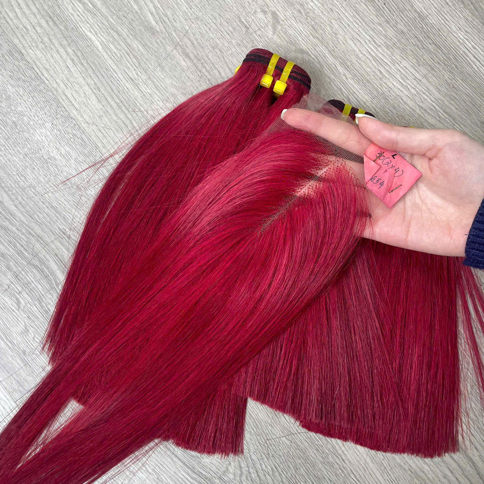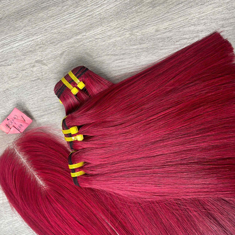 ผมเวียดนามแบบตรงสลวยเป็นมัด สำหรับผู้หญิง ราคาส่งจากโรงงาน คุณภาพสูง หรูหรา สีไวน์