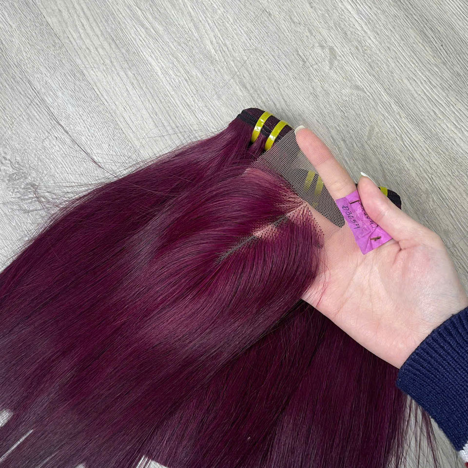 ผมเวอร์จินเวียดนามแบบตรงสลวยเป็นมัด สำหรับผู้หญิง ราคาขายส่งจากโรงงาน สีที่กำลังเป็นที่นิยม สีแดงเบอร์กันดีเข้ม แบบเส้นผมต่อ