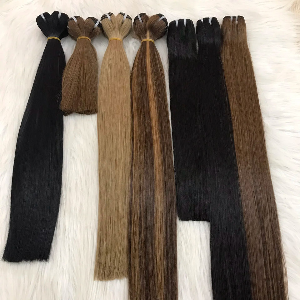 ผมต่อเวียดนามแท้แบบเรียบตรง คุณภาพสูง หลายสี แบบเย็บสองชั้น น้ำหนัก 100 กรัม/มัด