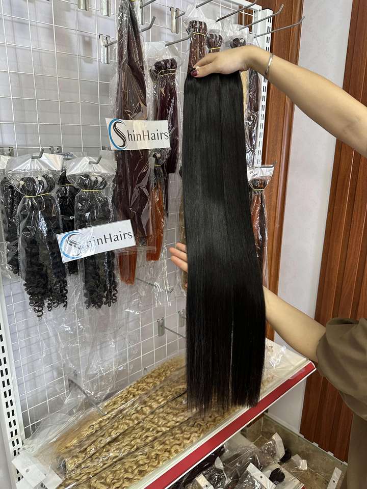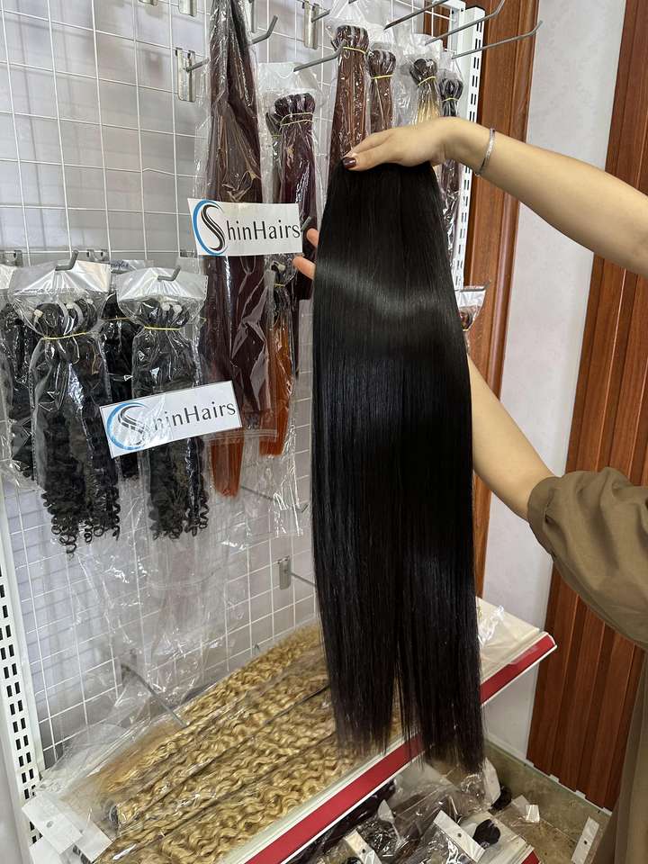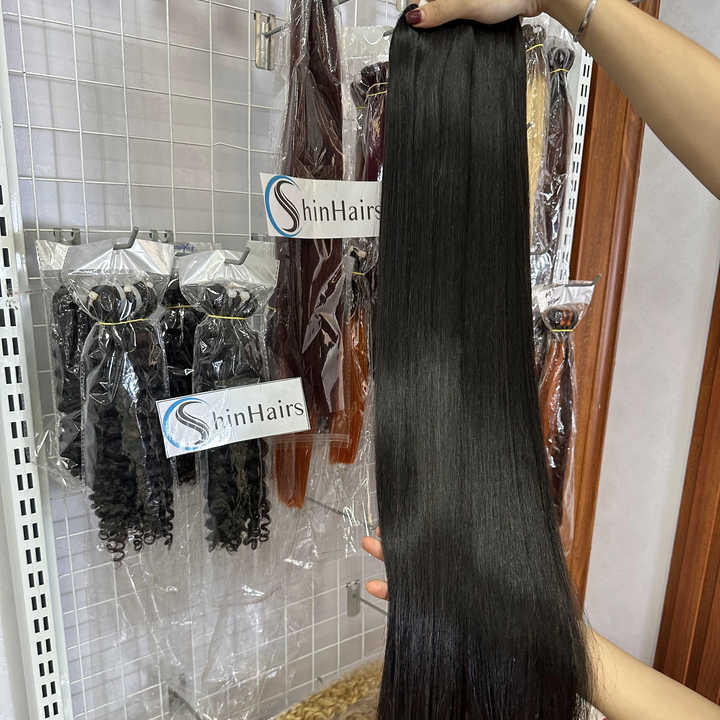 ผมตรงเงางามเกรด12A ผมต่อแบบไม่ผ่านกระบวนการผมสีดำธรรมชาติจากเวียดนามผมแท้มัดผมตรง