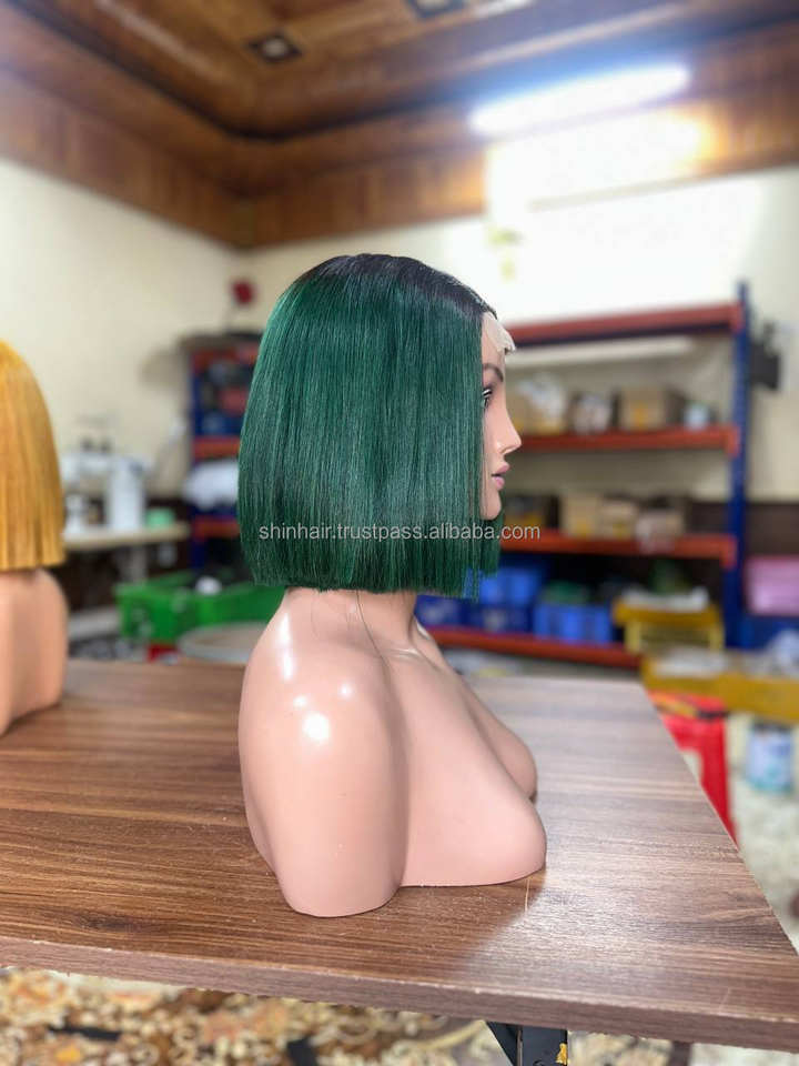 Silky Straight Bob Human Hair 2X6 Closure Wig Ombre Colore Human Hair Black Green Natural Human Hair Wigs