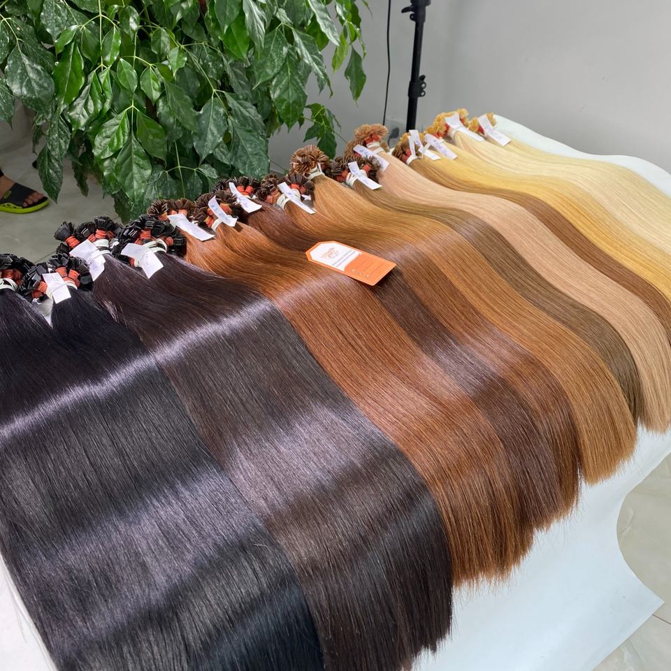 ผมต่อแบบตรงเรียบเนียนปลายแบน ผมเวียดนามแท้ จัดเรียงเกล็ดผม ขายส่งผมเวียดนามดิบ ต่อผมเคราติน