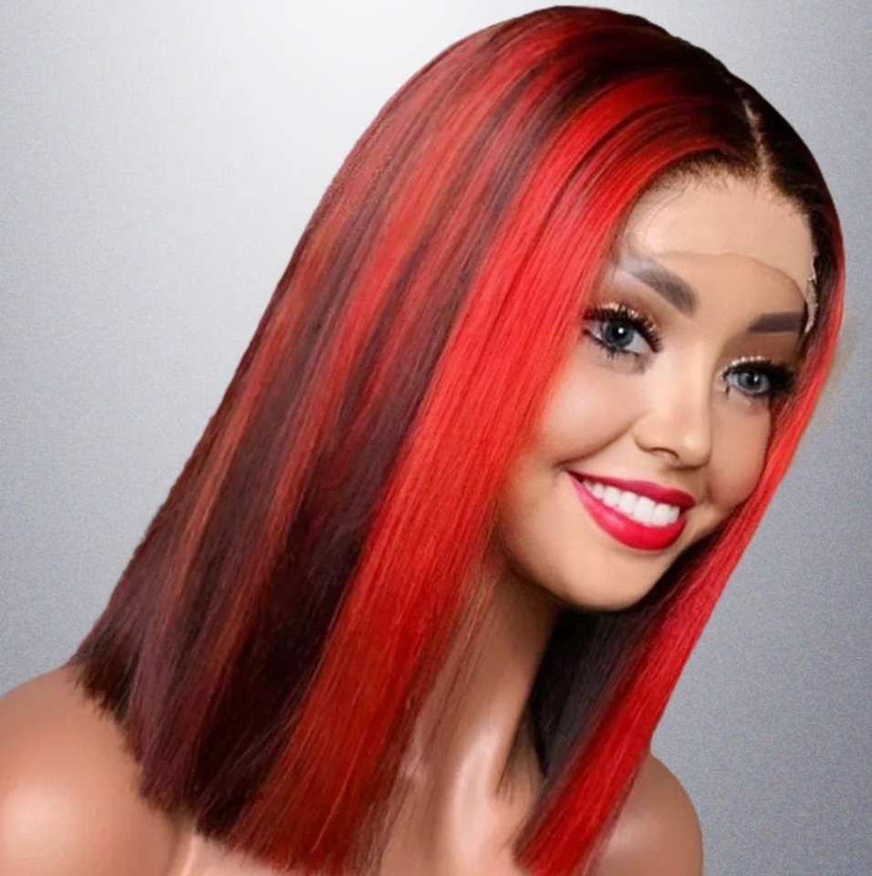 วิกผมตรงเงางามแบบตรงพร้อมไฮไลต์วิกผมด้านหน้าทำจากลูกไม้เต็มศีรษะเน้นผมมนุษย์