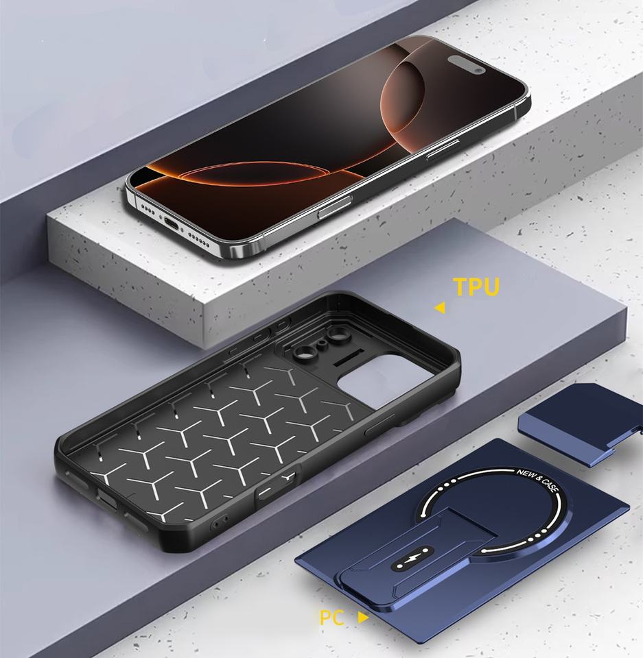 เคสโทรศัพท์แม่เหล็กกันกระแทกสำหรับ iPhone 17 16 15 14 13 11 Pro Max PLUS ฝาครอบขาตั้งในตัวพร้อมกล้องป้องกัน
