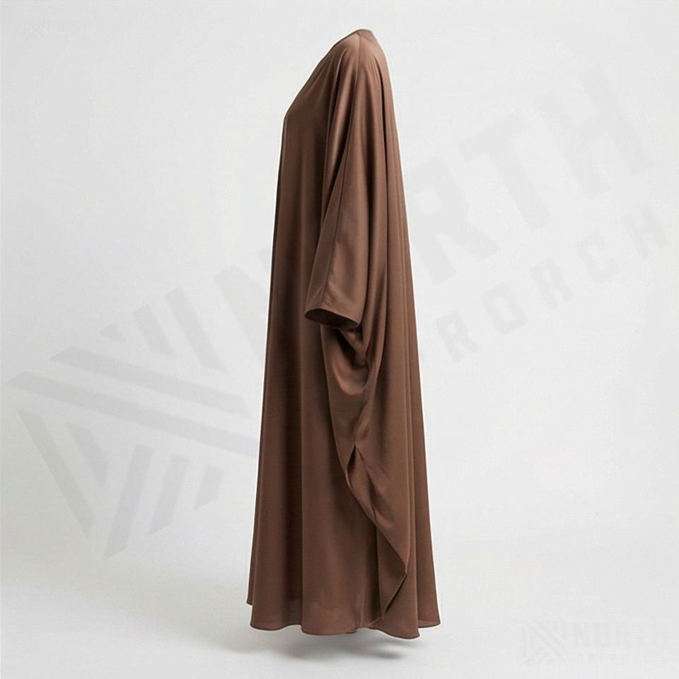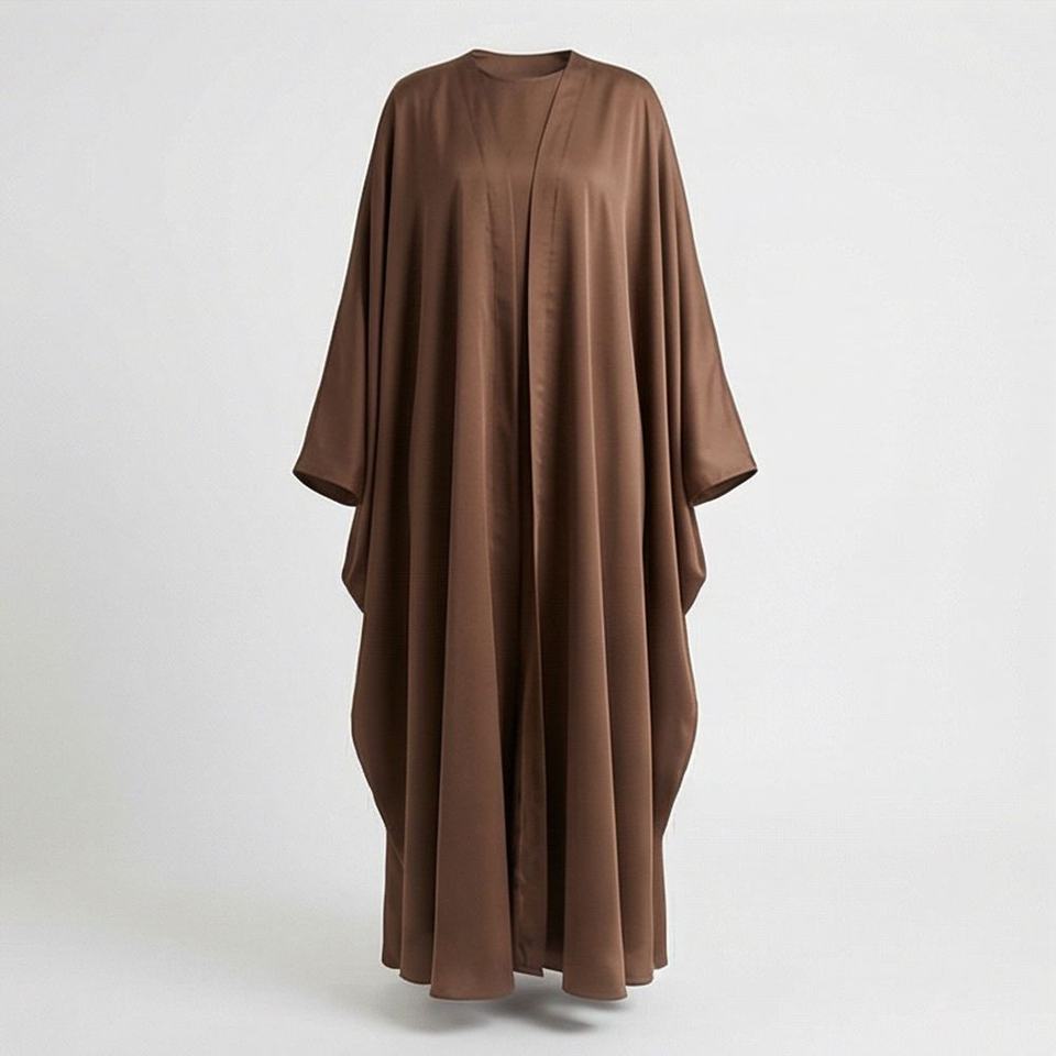 อาบายะผ้าโพลีเอสเตอร์เนื้อนิ่มแบบเปิดด้านหน้า สีพื้น ผ้าไนดา น้ำหนักเบา ประดับลูกปัด เรียบง่าย สไตล์มุสลิม สามารถสั่งตัดได้