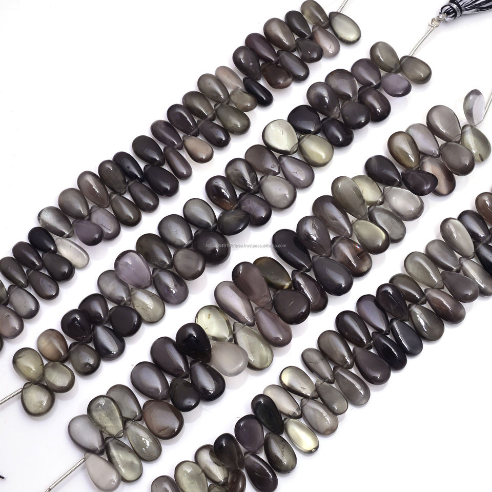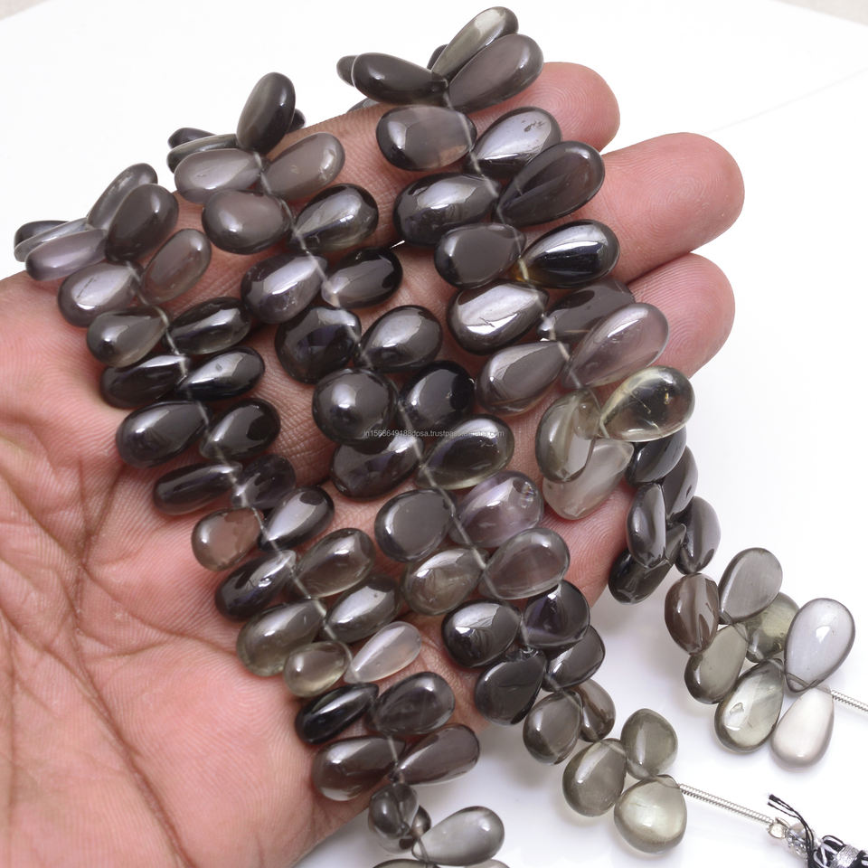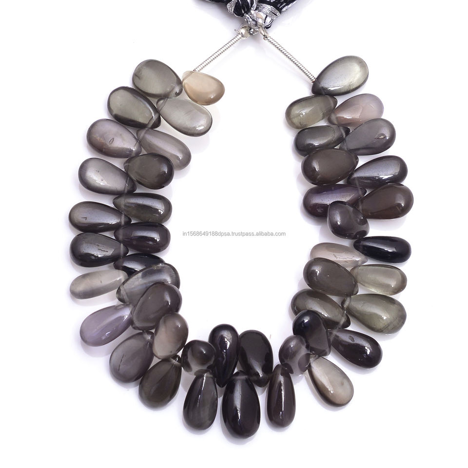 ลูกปัดพลอยซิลลิมาไนต์ทรงตาแมวธรรมชาติ รูปทรงลูกแพร์ เรียบเนียน สีดำ เกรด AAA ขนาด MM สำหรับทำเครื่องประดับ