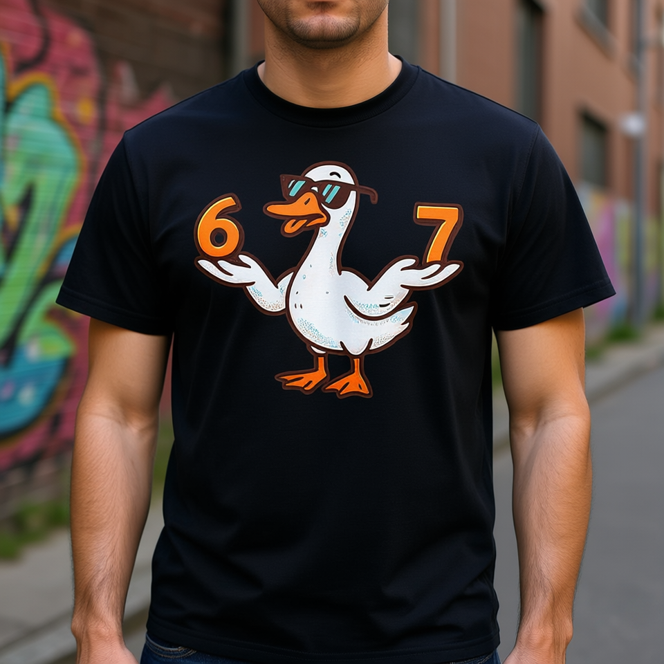 เสื้อยืดลายมีม Silly Goose 6 7 รุ่น Gen Alpha Slang สีดำ แขนสั้น พิมพ์ลายดิจิทัล สำหรับทุกเพศ เหมาะสำหรับใช้ในงานโปรโมชั่น