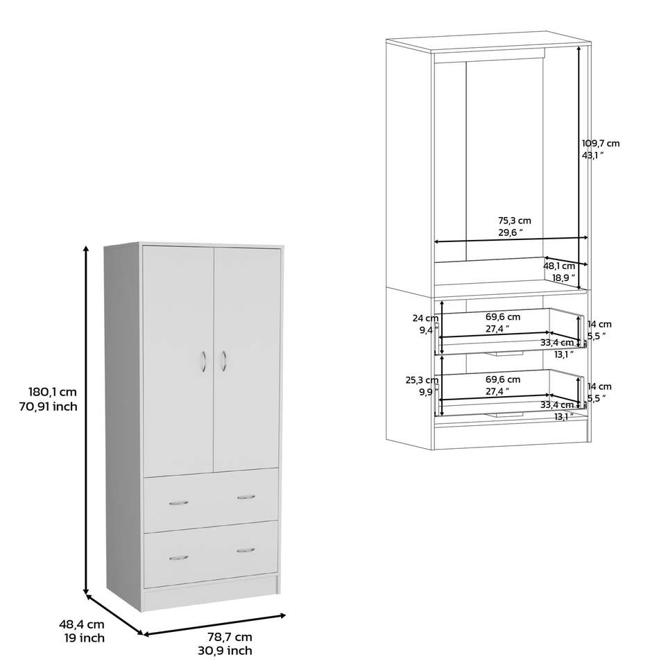 ไซโลตู้ armoire 71มีสองประตูลิ้นชักและแกนแขวนตู้เสื้อผ้าเฟอร์นิเจอร์
