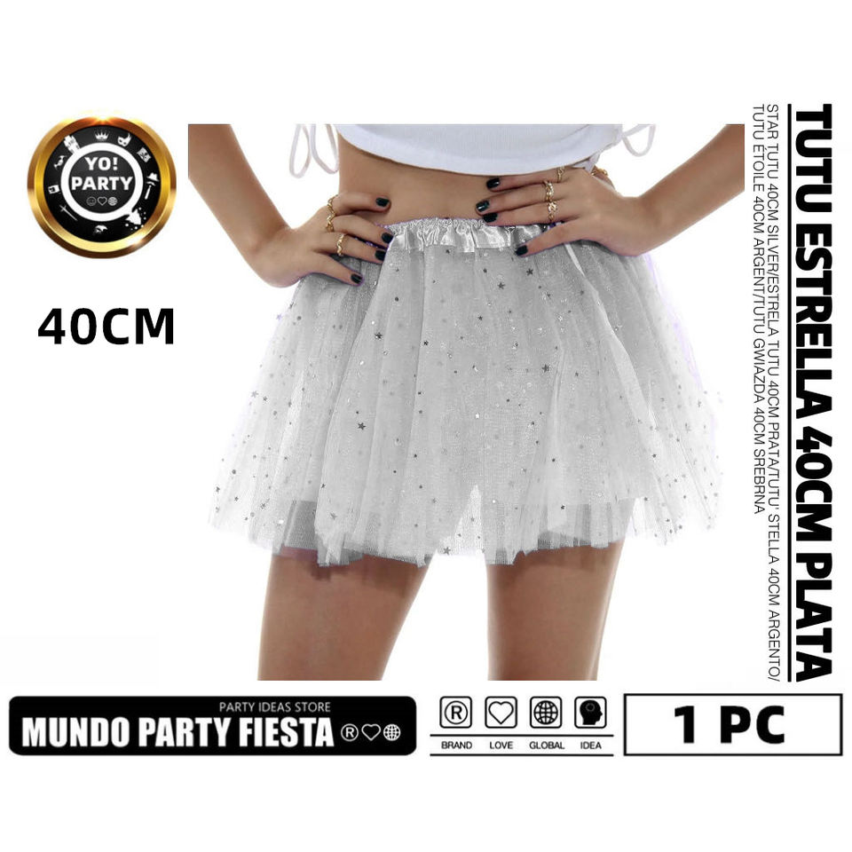 Silver#89008T 40CM Straight Hem Sequin Tulle Wrap Skirt Empire Waistline Breathable Spandex Short Length with Print Decoration
