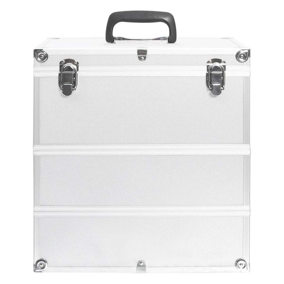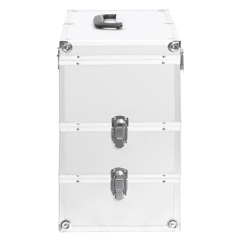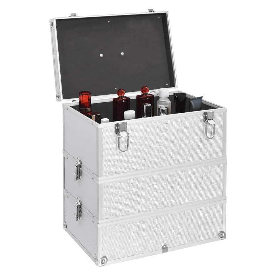 กระเป๋าเครื่องสำอางอลูมิเนียมสีเงิน ขนาด 14.6"x9.4"x15.7" พร้อมช่องจัดเก็บอเนกประสงค์สำหรับเครื่องสำอางและผลิตภัณฑ์ความงาม