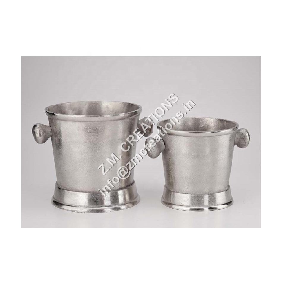Silver Aluminum Metal round Ice Bucket Table Top Decoration for Home Hotel Restaurant Wedding Beverage Chiller Holder