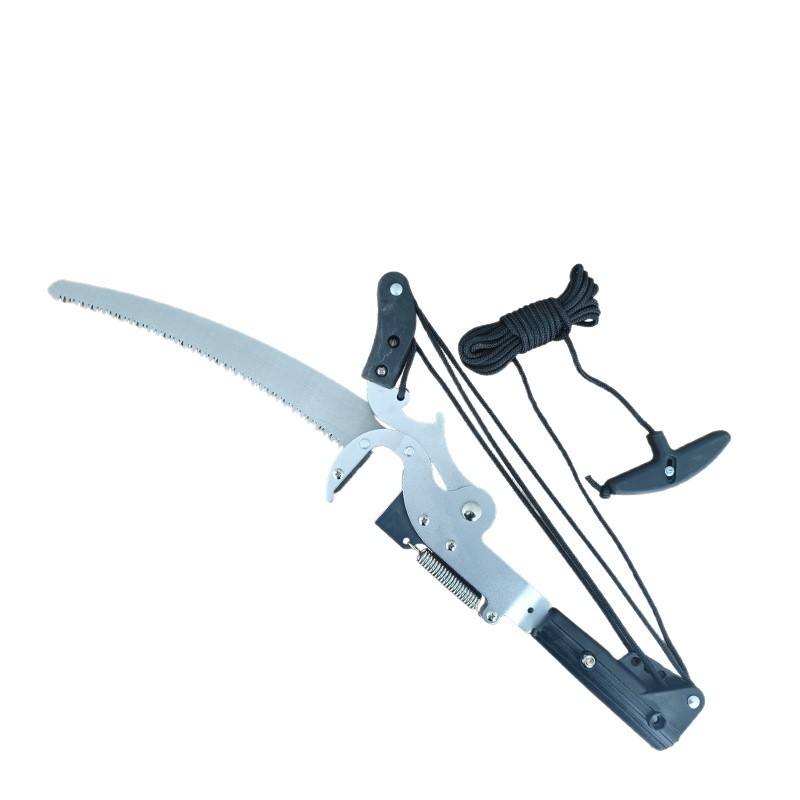 เลื่อยมือสีเงินและสีดำ ใบมีดสแตนเลส เครื่องมือตัดแต่งกิ่งไม้แบบใช้มือ ตัดกิ่งไม้ในสวน ตัดกิ่งสูง