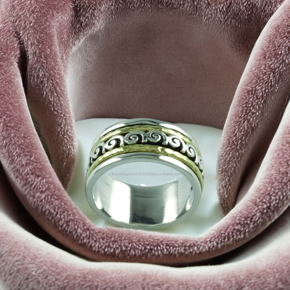 แหวนสปินเนอร์ทองเหลืองและเงิน925การตั้งค่าที่มองไม่เห็นสำหรับงานแต่งงานและงานปาร์ตี้-จัดหาโดยอินเดีย