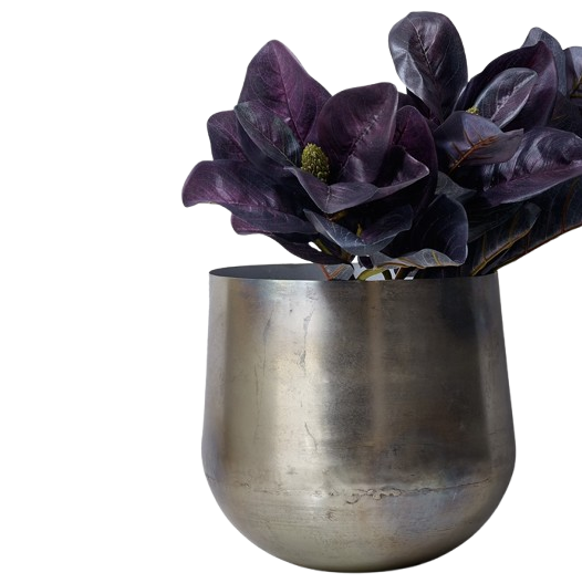 สีเงินโบราณบนโต๊ะโลหะตกแต่งแจกันดอกไม้งานแต่งงานทำด้วยมือชุบนิกเกิลแจกันโลหะ