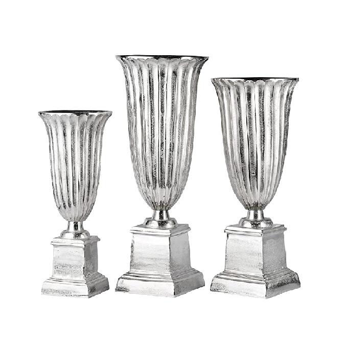แจกันโลหะโบราณสีเงินสำหรับตกแต่งดอกไม้ในสวนบ้านโต๊ะกลางแจกันดอกไม้ตกแต่งหรูหรา